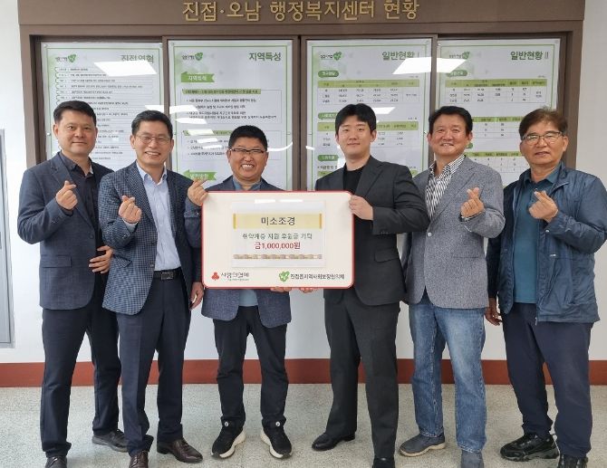 윤경배 진접오남행정복지센터장은 “올해에도 지역사회 취약계층에 관심을 갖고 사회 공헌 활동에 참여해 주신 미소조경산업에 감사드리며, 전해주신 따뜻한 마음 어려운 이웃분들께 잘 전달하도록 하겠다”라며 감사의 마음을 전했다.