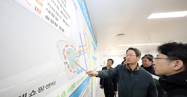 [경기=김현섭 기자] 14일 오전 수원역·광교중앙역 환승센터 현장점검을 위해 김희겸 행정1부지사와 백운석 수원시 제2부시장, 이부영 수원도시공사 사장, 남동경 경기도청 광역도시철도과장등이 수원역·광교중앙역 환승센터를 방문했다.