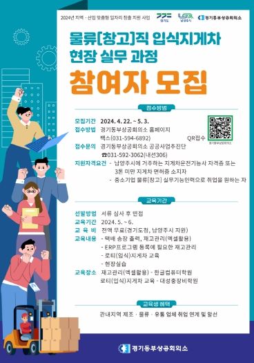 (정도일보) 남양주시와 경기동부상공회의소(회장 문한경)는 ‘2024년 지역·산업맞춤형 일자리창출 지원사업’의 일환으로 물류·창고직 입식지게차 현장 실무과정에 참여할 교육생을 22일부터 12일간 모집한다.