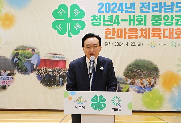 윤병태 나주시장이 4-H연합회 한마음 체육대회에서 인사말을 하고 있다.(사진제공-나주시)