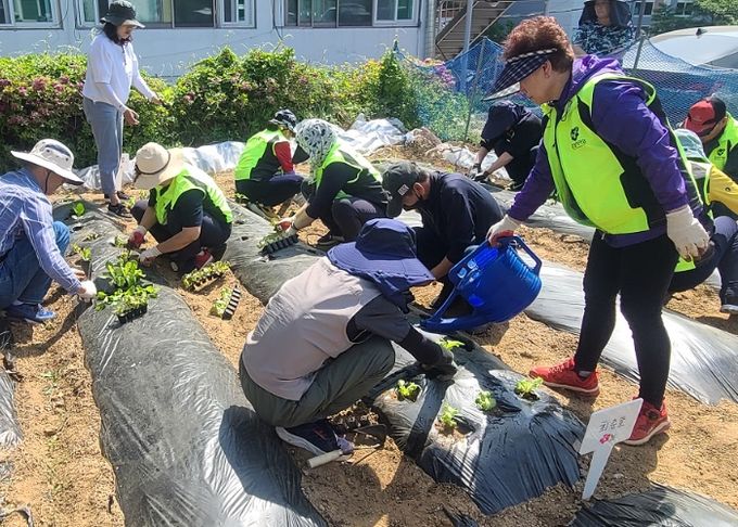 앞서 금곡동 24통 마을회관(통장 이경배)의 지원으로 군장마을 공동체센터 텃밭 부지를 무상으로 제공받았으며, 지역사회보장협의체가 토양강화작업, 울타리 조성 등 텃밭 운영 기반을 사전 조성했다.