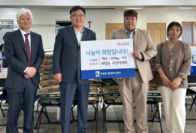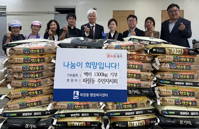 [정도일보 김현섭 기자] 수원시 장안구 파장동 제2기 주민자치위원회(신임 회장 정상윤)가 23일 300만원 상당 백미(10kg) 110포를 관내 취약계층을 위해 사용해 달라며 기부했다.