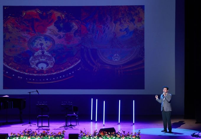 용인문화재단이 주최한 이날 음악회는 화가들의 미술 작품과 잘 어울리는 노래들을 선정해서 그림과 화가들에 대한 설명, 음악과 관련한 스토리를 이상일 시장이 설명하고 성악가 4명이 10곡을 노래하는 형식으로 진행됐다.