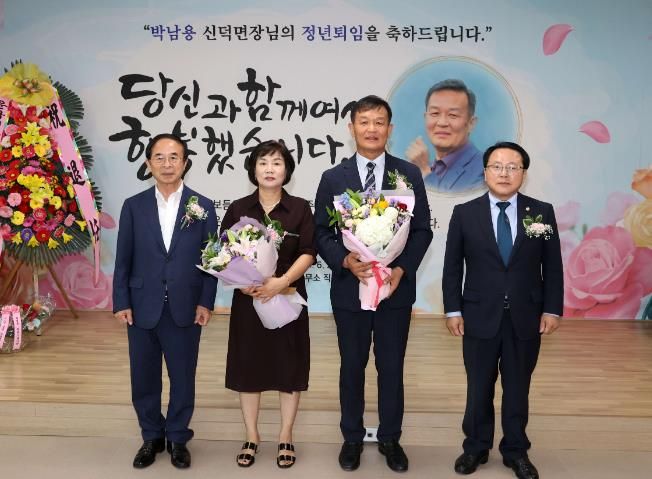 이날 퇴임식은 30년간의 공직 생활을 마무리하는 박남용 신덕면장의 업적을 회고하고, 감사의 마음을 전하기 위하여 공직에 헌신해 온 자취를 돌아보고 새로운 출발을 기념했다.