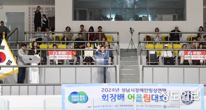 (정도일보) 신상진 성남시장은 1일 오후 12시 탄천종합운동장 빙상장에서 열린 ‘2024년 성남시장애인 빙상연맹 회장배 어울림빙상대회’에 참석했다.