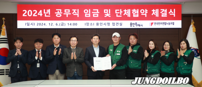 [정도일보 김제영 기자] 용인특례시는 6일 시청 접견실에서 시 소속 공무직 근로자를 대표하는 전국민주연합노동조합 용인지부와 ‘2024년 임금‧단체 협약’을 체결했다고 8일 밝혔다.