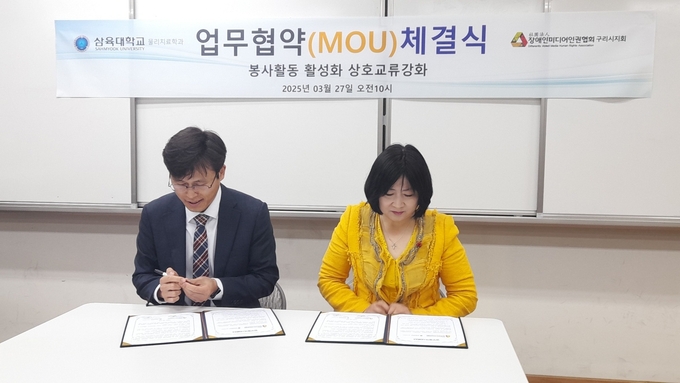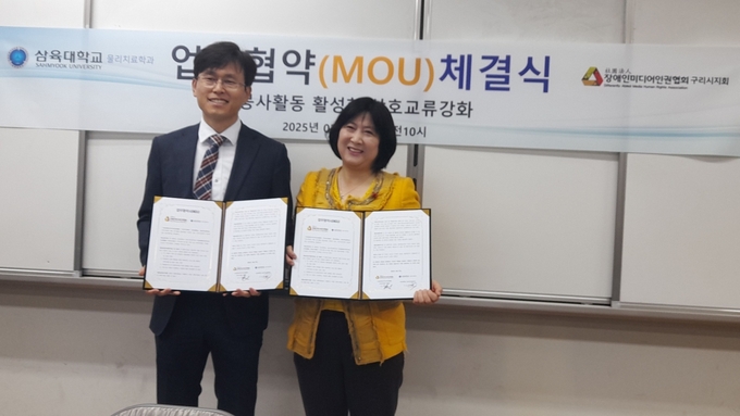 [정도일보 김현섭 기자] (사)장애인미디어인권협회 구리시지회(회장 권미경)는 삼육대학교 물리치료학과(학과장 이용우 교수)와 지난 27일 삼육대학교 제3과학관에서 지역사회 봉사 협력을 위한 업무협약(MOU)을 체결했다.