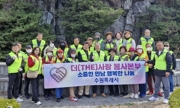 더(THE) 사랑 봉사본부가 30일 광교산을 찾아 휴지줍기 봉사를 진행했다.