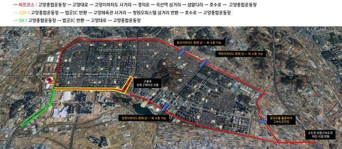 시 관계자는 “하프 마라톤 대회 개최 및 교통 통제로 인해 고양시 주요도로 이용에 제약이 발생하는 만큼 4월 6일 일요일 오전에 해당 구간을 이용하는 시민들께서는 교통 통제에 적극적으로 협조해 주시길 당부드린다”라고 밝혔다.