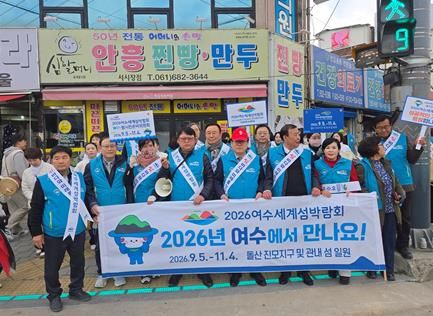 (정도일보) 2026여수세계섬박람회 범시민준비위원회가 지난 1일 서교동로터리와 서시장 일원에서 섬박람회 홍보활동을 펼쳤다.