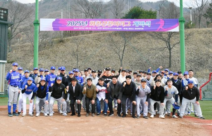 (정도일보) 2025 화천 산천어 야구리그 개막식 및 개막경기가 6일 간동면 간동야구장에서 최문순 군수, 박대현 도의원, 조웅희 군의회 부의장, 송호관 군체육회장을 비롯한 선수들이 참석한 가운데 열렸다.