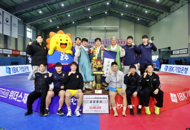(정도일보) 울주군 해뜨미씨름단 소속 정종진 선수가 6일 강원특별자치도 평창군 진부생활체육관에서 열린 ‘위더스제약 2025 민속씨름 평창오대산천장사씨름대회’에서 금강장사에 등극했다.