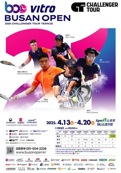 (정도일보) 부산시는 4월 13일부터 20일까지 금정체육공원 테니스경기장에서 '2025 부산오픈 국제 챌린저 테니스 대회'가 개최된다고 밝혔다.