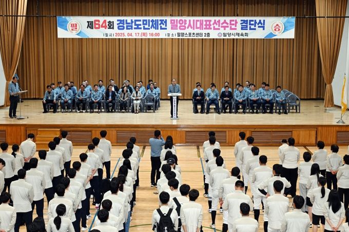(정도일보) 밀양시체육회는 17일 밀양스포츠센터에서 임원과 선수 등 100여 명이 참석한 가운데 제64회 경남도민체육대회에 출전하는 선수단의 선전과 필승을 다짐하는 결단식을 개최했다고 밝혔다.