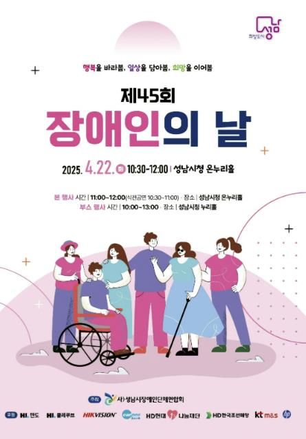 (정도일보) 성남시는 ‘제45회 장애인의 날(4.20)’을 맞아 오는 4월 22일 오전 10시 30분 시청 온누리에서 기념식을 연다.