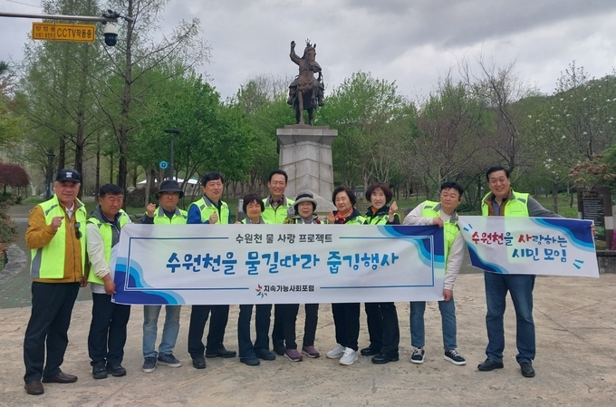 지속가능사회포럼과 수원천사 추진위 등이 지난 19일 '수원천 줍깅 행사'를 진행했다.