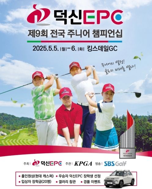 (정도일보) 덕신EPC(회장 김명환)가 주최하고 (사)한국프로골프협회(회장 김원섭, KPGA)가 주관하는 ‘제9회 덕신 EPC배 전국 주니어 챔피언십’이 5일부터 6일까지 양일간 충북 충주 소재 킹스데일 골프클럽 레이크, 힐코스에서 펼쳐진다.