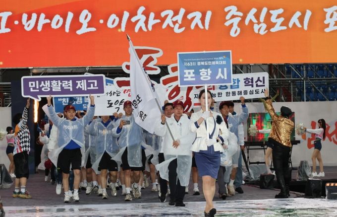 9일 김천종합운동장에서 열린 개회식에서는 포항시 선수단이 선수, 임원, 읍면동 체육회를 포함해 70여 명 규모로 입장하며 관중들의 뜨거운 환호를 받았다.