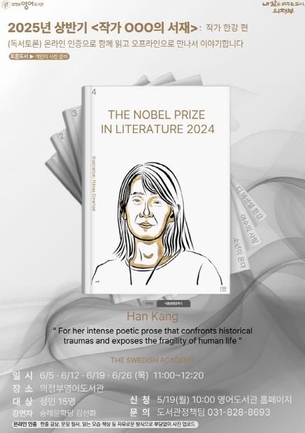 의정부시, 한강 작가와 함께하는 독서토론 ‘작가 OOO의 서재’ 운영