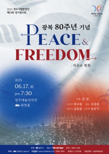 이번 연주회는 광복 80주년을 기념하고, 다가오는 2025 APEC 정상회의를 앞둔 경주시가 세계에 전하고자 하는 자유와 평화의 메시지를 음악으로 표현하는 뜻깊은 무대다.