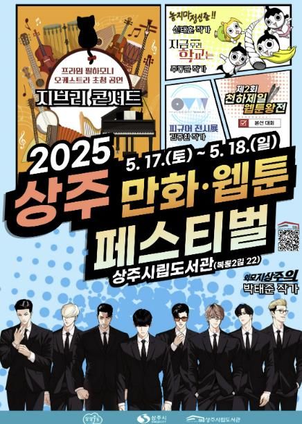 (정도일보) ‘2025 상주 만화·웹툰 페스티벌’이 5월 17일부터 18일까지 2일간 상주시립도서관 및 상주시민문화공원에서 개최된다.