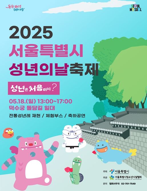 (정도일보) 서울시가 오는 5월 18일 오후 1시부터 5시까지 덕수궁 돌담길 차 없는 거리 일대에서 2006년생을 위한 성년의 날 기념행사를 개최한다. 올해로 만 19세가 되는 2006년생의 성년을 축하하고, 책임 있는 사회 구성원으로서의 첫걸음을 응원하기 위해 마련된 자리다.