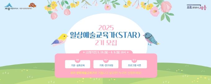 (정도일보) 세종시문화관광재단(대표이사 박영국)이 2025년 세종 일상예술교육가(STAR) 양성과정 2기 참여자를 모집한다.