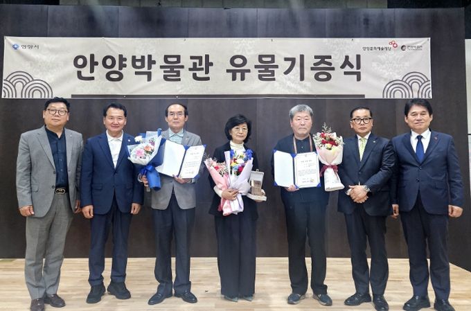 (정도일보) (재)안양문화예술재단 안양박물관은 지난 15일 남평 문씨 종중 문서를 비롯해 근현대 안양의 생활상을 담은 유물 12건 25점을 기증받았다고 19일 밝혔다. 이번 기증은 지역의 역사와 문화를 후대에 전하고자 하는 뜻에서 이루어진 것으로, 안양박물관은 기증식을 열고 기증자 문화영, 최윤희, 최병렬 씨에게 감사패와 기증 증서를 전달했다.