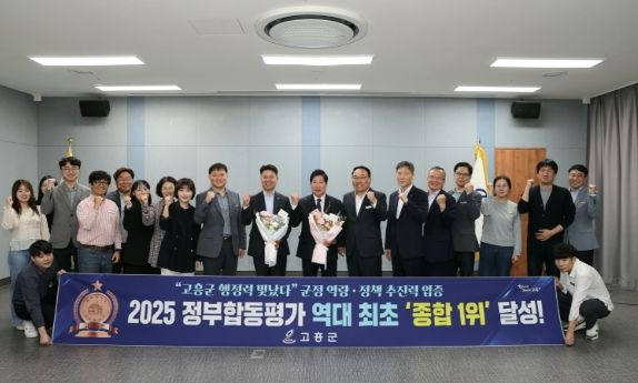 전라남도에서 지난 12일 발표한 2025년 정부합동평가(2024년 실적)에서 고흥군이 역대 최초로 전라남도 22개 시군 중 종합 1위를 차지했다.