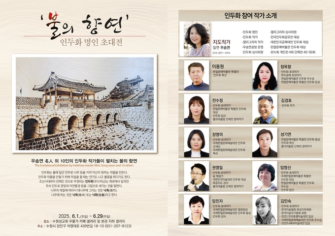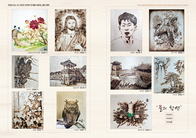 [정도일보 김현섭 기자] 우송연 명인을 비롯해 10인의 인두화 작가들이 경기도 수원시 소재 수원성교회에서 '불의 향연' 인두화 명인 초대전을 오늘부터 오는 29일까지 개최한다.