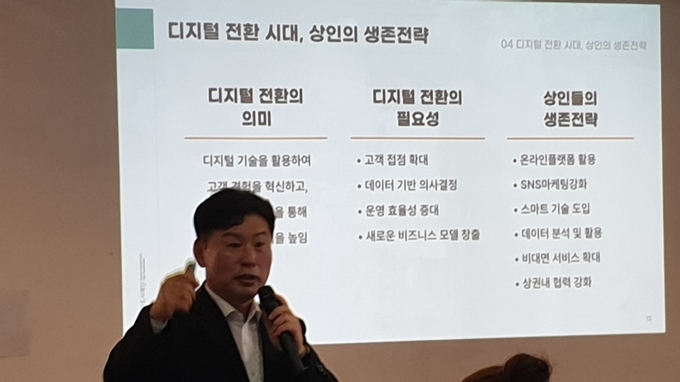 교육 내용으로는 ▲스마트폰으로 사진만 잘 찍어도 매출 up! ▲이 색에 끌린다! 소비를 부르는 컬러 활용법 ▲영어 한마디가 매출을 바꾼다! ▲우리 상권 함께 최고 상권 만들기 프로젝트 등이 있다.