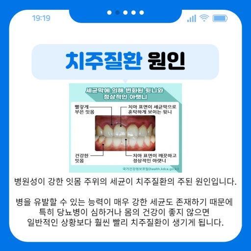 지난해 우리나라 국민이 의료 기관 외래를 방문해 가장 많이 진료를 받은 질병이 ‘잇몸병(치주질환)’이라고. 2위 감기 환자보다 198만 명이 많은 1958만 명 수준이고, 30~40대가 약 581만명으로 전체의 30%를 차지한다고. 그리고 치의학계의 잇몸병 예방법은 치아 사이와 치아와 잇몸이 맞닿는 잇몸선에 대한 올바른 양치질에 있다고. 음파 전동 칫솔 권장은 덤.....