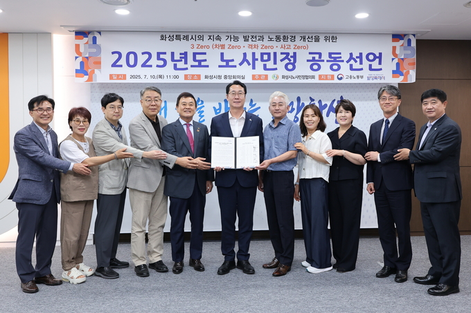 화성시노사민정협의회(위원장 정명근 화성시장)가 10일 시청 중앙회의실에서 '3 Zero(차별 Zero, 격차 Zero, 사고 Zero)' 실현을 위한 공동선언식을 개최했다.