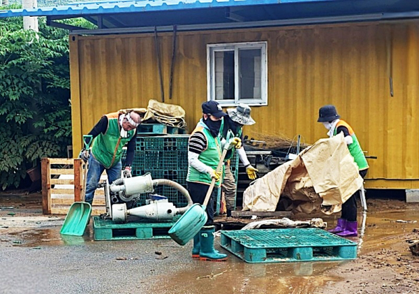 방재단은 포크레인 2대, 특장차 1대, 지게차 1대, 고압세척기, 방역기 등 장비를 동원해 침수 주택 내 토사물 정리와 세척부터 감염병 예방을 위한 방역 작업 등을 펼치며 복구 활동에 힘을 보탰다.