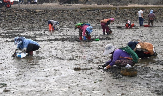 안산시 대부도 종현 자율관리어업 공동체가 바지락을 캐고 있다. [사진=경기도]