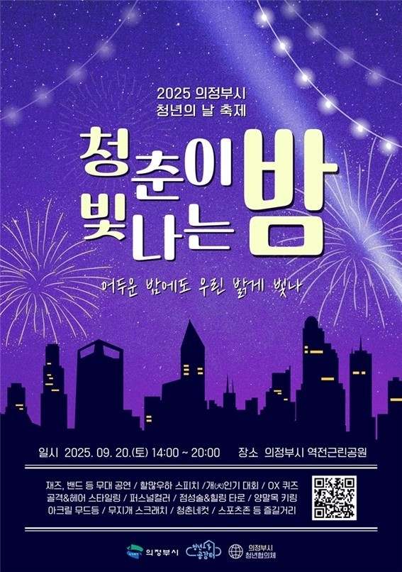 [정도일보 정근영 기자] 의정부시는 9월 20일 오후 2시부터 8시까지 의정부 역전근린공원에서 ‘2025년 청년의 날 축제(청춘이 빛나는 밤:청빛밤)’을 개최한다.