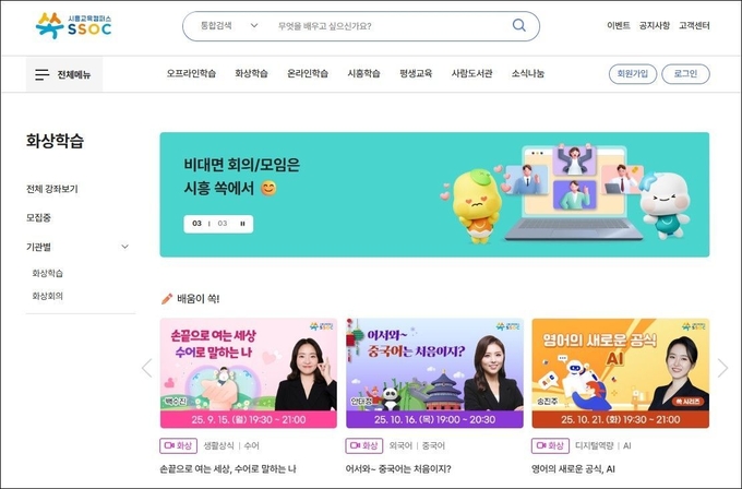시흥시의 평생교육 플랫폼인 '시흥교육캠퍼스 쏙(SSOC)'의 화상학습 페이지 [사진=시흥시]