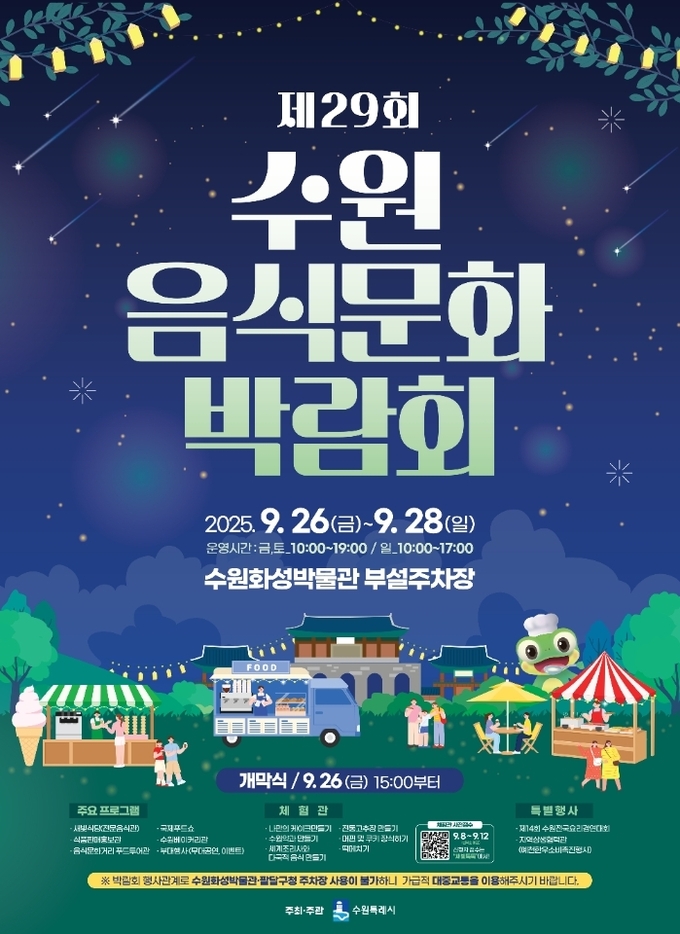 [정도일보 고정희 기자] 제29회 수원음식문화박람회가 9월 26~28일 수원화성박물관 부설주차장에서 열린다.