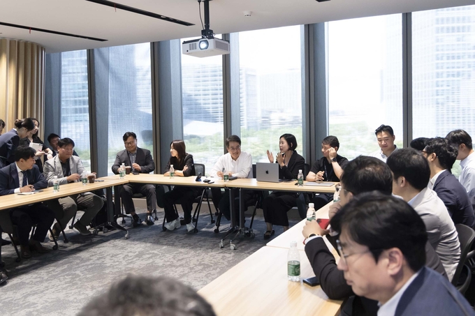 25일 상하이 텐센트 지사를 방문한 김동연 경기도지사와 경기도 AI 리더스 동행기업이 텐센트 관계자들과 대화를 나누고 있다. [사진=경기도]