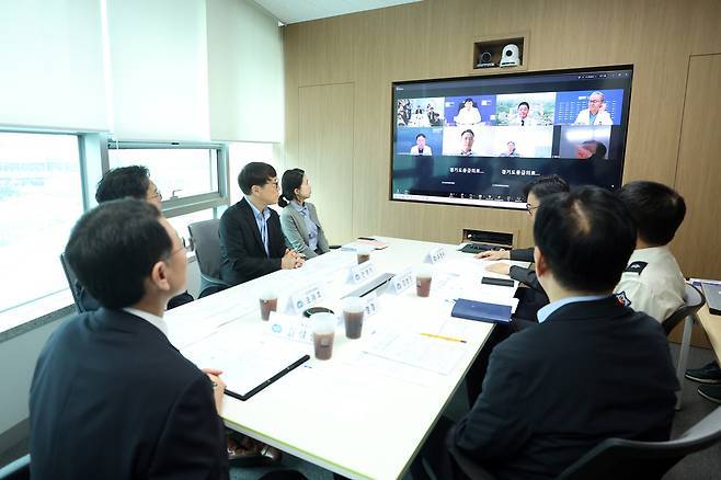 김성중 경기도 행정1부지사와 도내 9개 권역응급의료센터 병원장 등이 응급의료협의체 영상회의를 하고 있다. [사진=경기도]