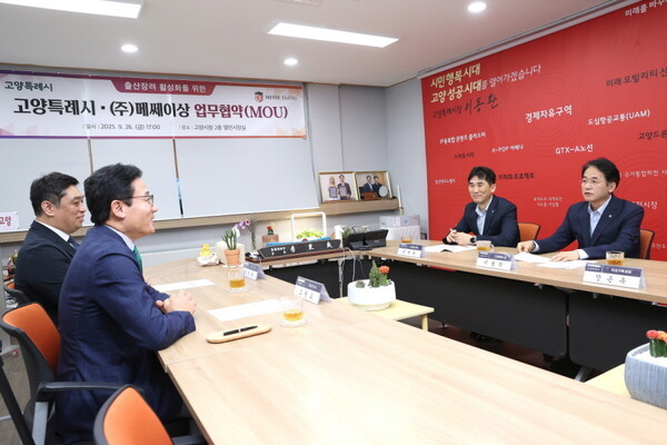 [정도일보 김현섭 기자] 고양특례시는 국내 대표 전시 주최사 ㈜메쎄이상(대표 조원표)이 지자체와는 최초로 출산 장려 활성화 및 건강한 양육 문화 조성을 위해 손을 잡았다고 밝혔다.