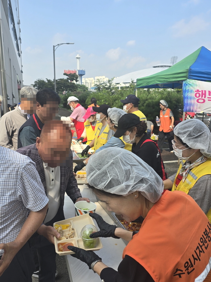 1일 수원종합운동장에서는 코로나19로 중단됐던 밥차 행사가 5년 만에 다시 열려 택시·플랫폼 노동자 등 200여 명에게 따뜻한 짜장면과 탕수육이 제공됐다.