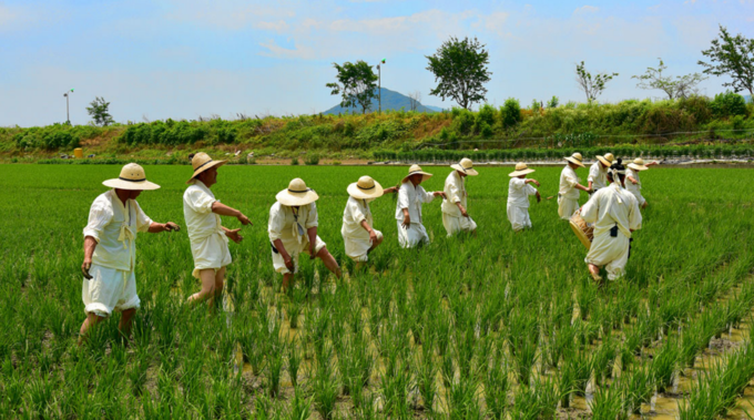 용인특례시 향토무형유산으로 지정된 백암농요 논매기 모습 [사진=용인특례시]