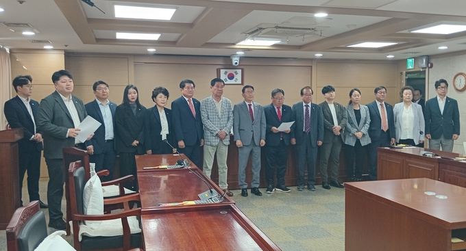 이날 박현수 대표 등 국민의힘 의원 17명은 시의회 도시미래위원회 회의실에서 기자회견을 열고 “수원시 학원연합회가 민주당 당원 가입을 조직적으로 독려한 사실이 언론을 통해 드러났다. 관련 의혹에 대해 철저히 조사하고 시민 앞에 투명하게 공개하겠다”고 밝혔다.