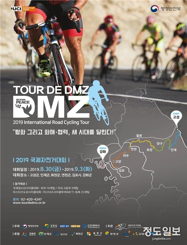 (정도일보) 평화와 화해·협력의 새 시대를 달리는 세계인의 자전거 축제 ‘뚜르 드 디엠지 2019 국제자전거대회’가 오는 30일부터 9월 3일까지 닷새간 비무장지대와 접경지역에서 개최된다.