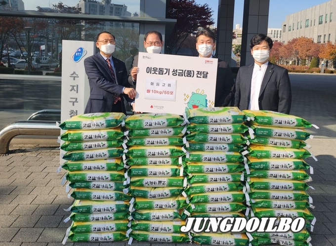 [정도일보 김제영 기자] 용인특례시 수지구는 성복동에 위치한 화음교회가 저소득층에게 전해달라며 10kg짜리 백미 50포를 수지구에 기탁했다고 27일 밝혔다.