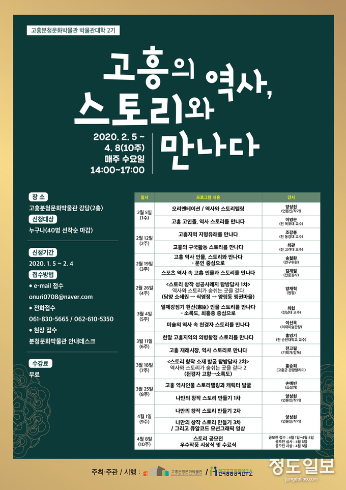 이번 강좌를 통해 고흥의 역사, 문화유산에 대한 가치와 의미를 공유하고 더 나아가 스토리 창작 인재를 양성하는 것에 목표를 두고 있다.