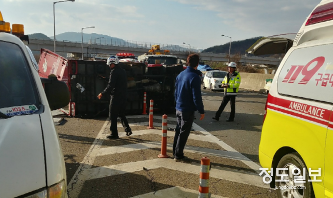 [정도일보 윤진성 기자]지난 30일 오후 15:22분경 남해고속도로 옥곡IC 인근 고속도로 상에서 1톤 트럭과 승용차간의 추돌 사고가 발생했다.