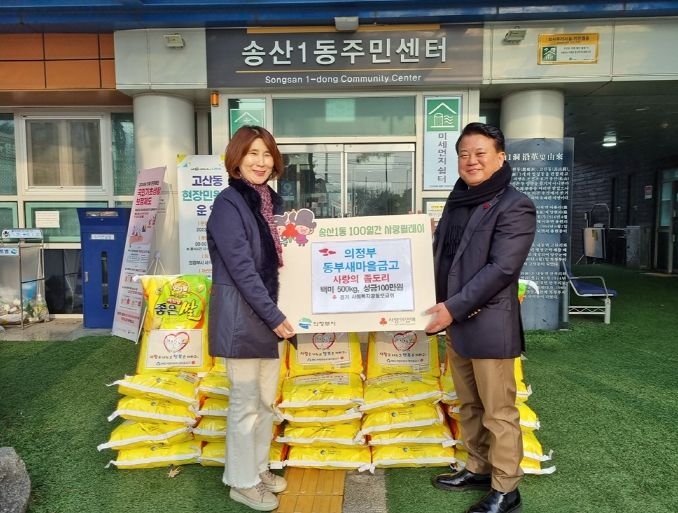 (정도일보) 의정부시 송산1동주민센터는 1월 26일 의정부동부새마을금고가 다가오는 설 명절을 맞아 사랑의 좀도리쌀 2천810kg과 성금 636만 원을 기탁했다고 밝혔다.