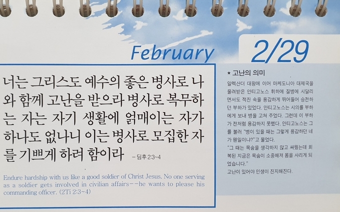 "육체의 연습은 약간의 유익이 있으나 경건은 범사에 유익하니 금생과 내생에 약속이 있느니라" -디모데전서 4장8절